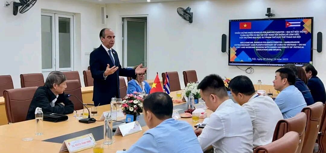 Por Duanys Hernández Torres Cuba y Vietnam ratifican sus excelentes lazos de solidaridad en materia educacional y deportiva. En la mañana del 30 de octubre de 2025, la Universidad de Deportes y Educación Física de Hanoi tuvo el honor de recibir al Rogelio Polanco Fuentes, Embajador Extraordinario y Plenipotenciario de la República