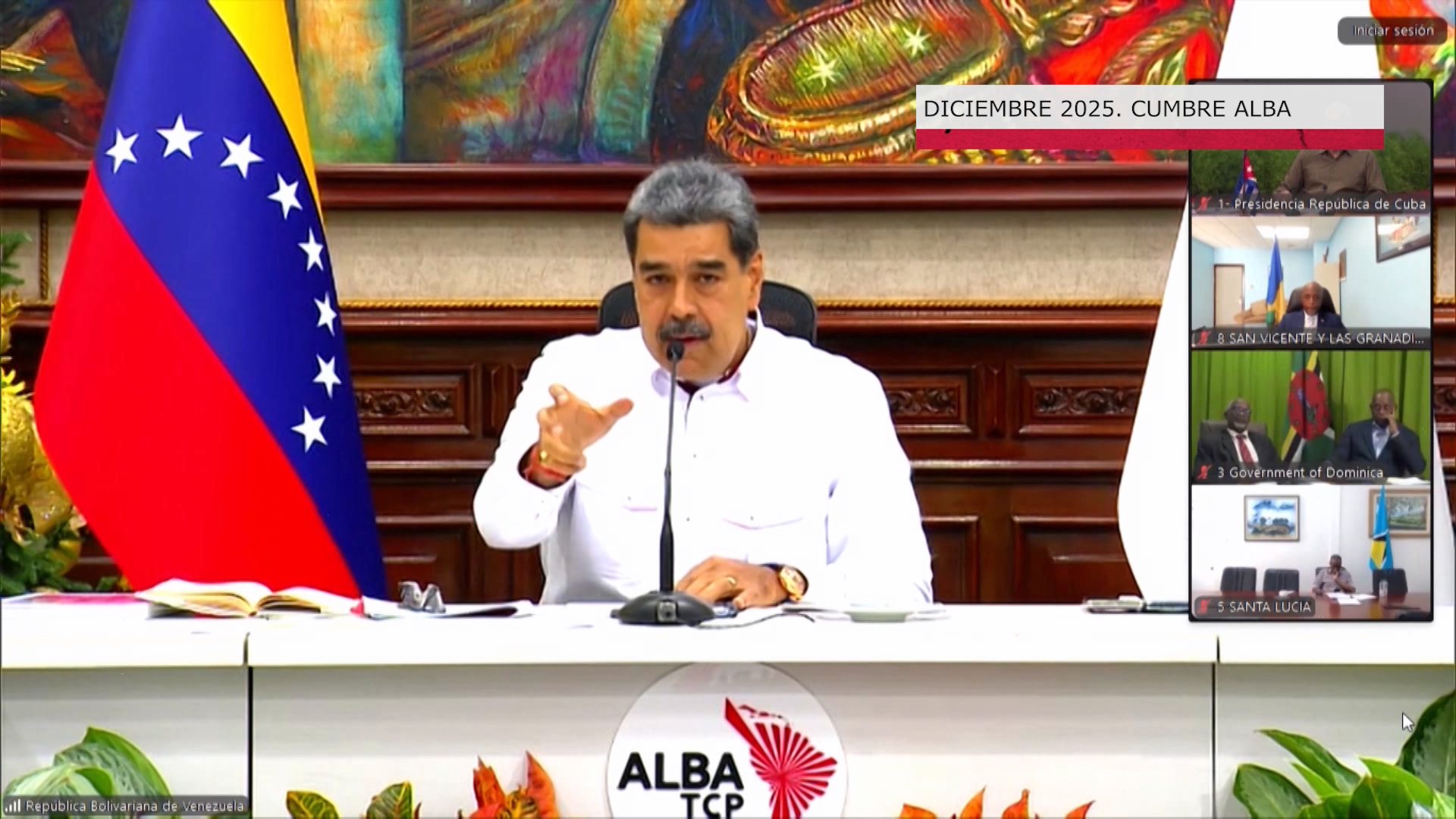 “El despliegue naval ostensible exagerado e injustificado de las Fuerzas Navales de los Estados Unidos en el Mar Caribe y la deliberada amenaza de agresión militar contra la nación bolivariana revelan un propósito hegemónico y criminal que debe poner en alerta a todos los pueblos y gobiernos del continente es un peligro que se debe denunciar de la forma más resuelta y desde Cuba hoy aquí en esta Cumbre del ALBA lo condenamos en los términos más firmes y categóricos”.