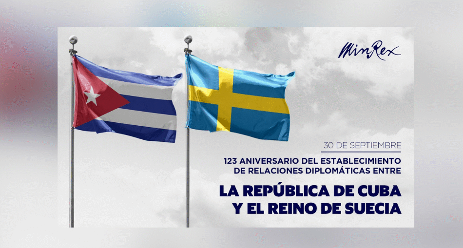 El Ministerio de Relaciones Exteriores de Cuba celebró este martes el aniversario 123 del establecimiento de las relaciones diplomáticas con Suecia. A través de la red social X, la Cancillería destacó que los nexos bilaterales se sustentan en la voluntad mutua de profundizar la cooperación entre ambas naciones.