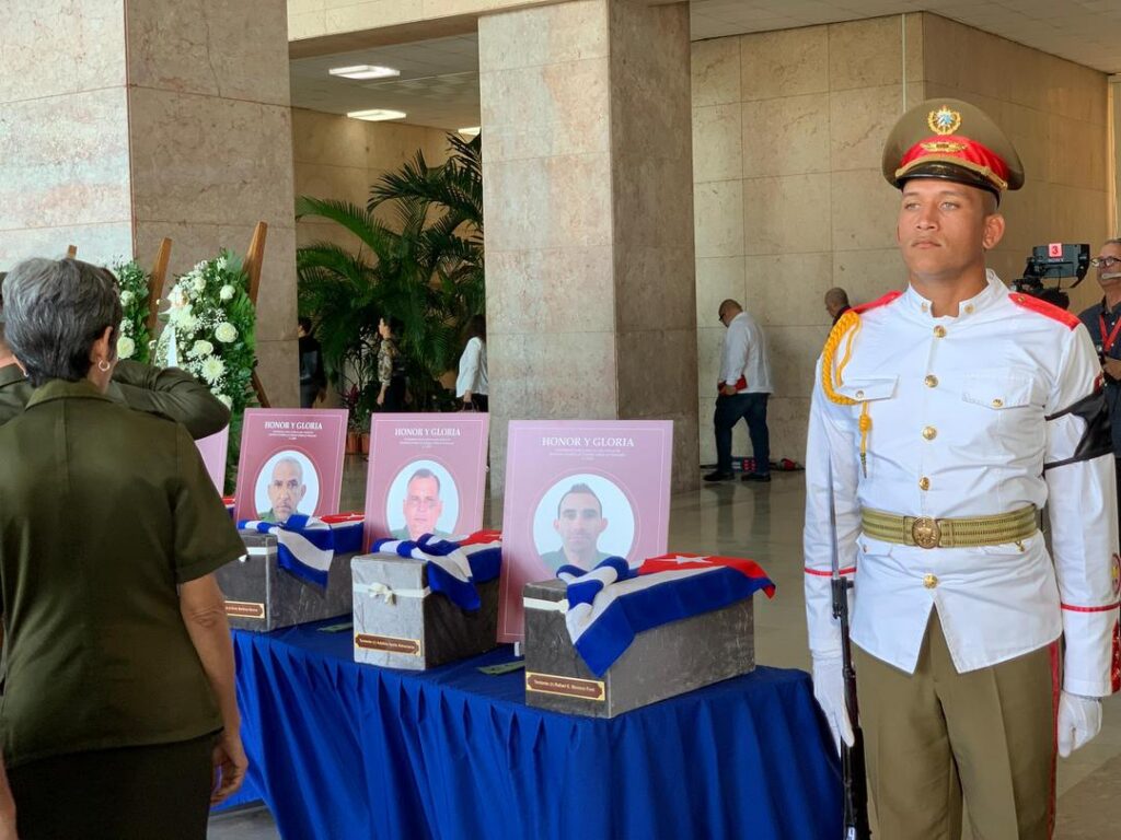 Con la presencia del General de Ejército, Raúl Castro Ruz y el presidente de la República de Cuba, Miguel Díaz-Canel Bermúdez, se desarrolló en el Aeropuerto Internacional José Martí de La Habana el primer homenaje póstumo a los 32 cubanos que, con su ejemplo, enaltecen el honor y la valentía de los hombres y mujeres que pertenecen a las Fuerzas Armadas Revolucionarias y al Ministerio del Interior.
