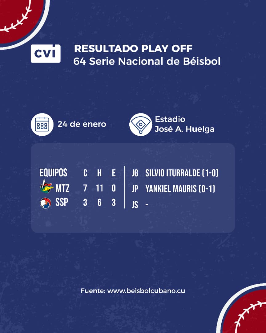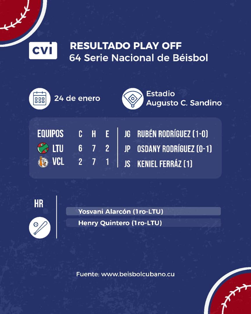 Por los derrotados, Cristian Rodríguez se fue de 2-4, con igual cantidad de anotadas, y, Osdany Rodríguez cargó con el revés.