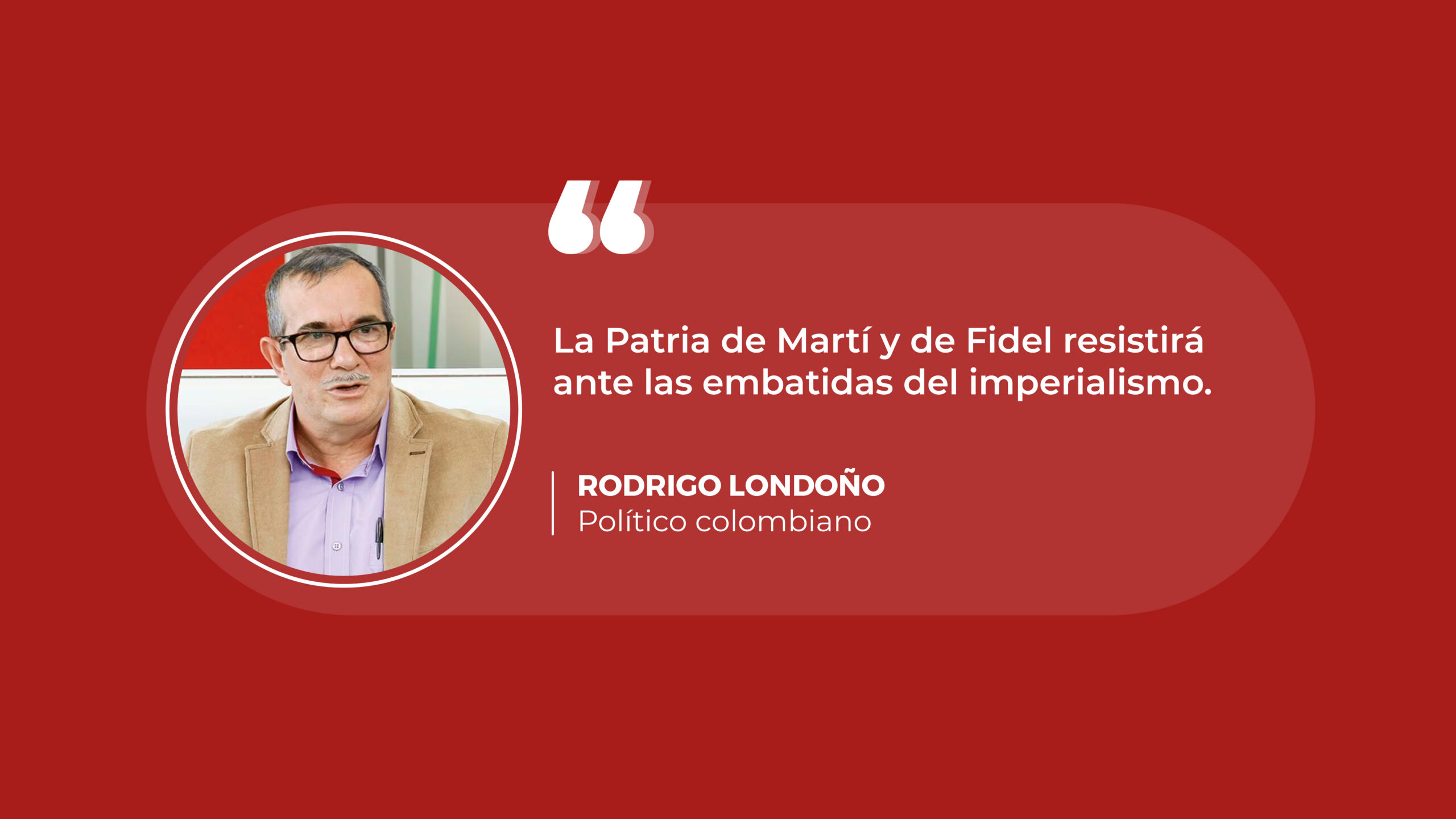 El político colombiano Rodriogo Londoño expresó su solidaridad con el pueblo y el gobierno cubano ante las nuevas agresiones económicas de Trump, afirmó que la Patria de Martí y de Fidel resistirá ante las embatidas del imperialismo.