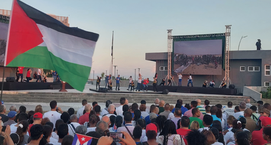 Más de 100 mil capitalinos, en representación del pueblo cubano, exigieron hoy el cese del genocidio israelí en Palestina durante una multitudinaria concentración en la Tribuna Antiimperialista José Martí, encabezada por el presidente Miguel Díaz-Canel Bermúdez.