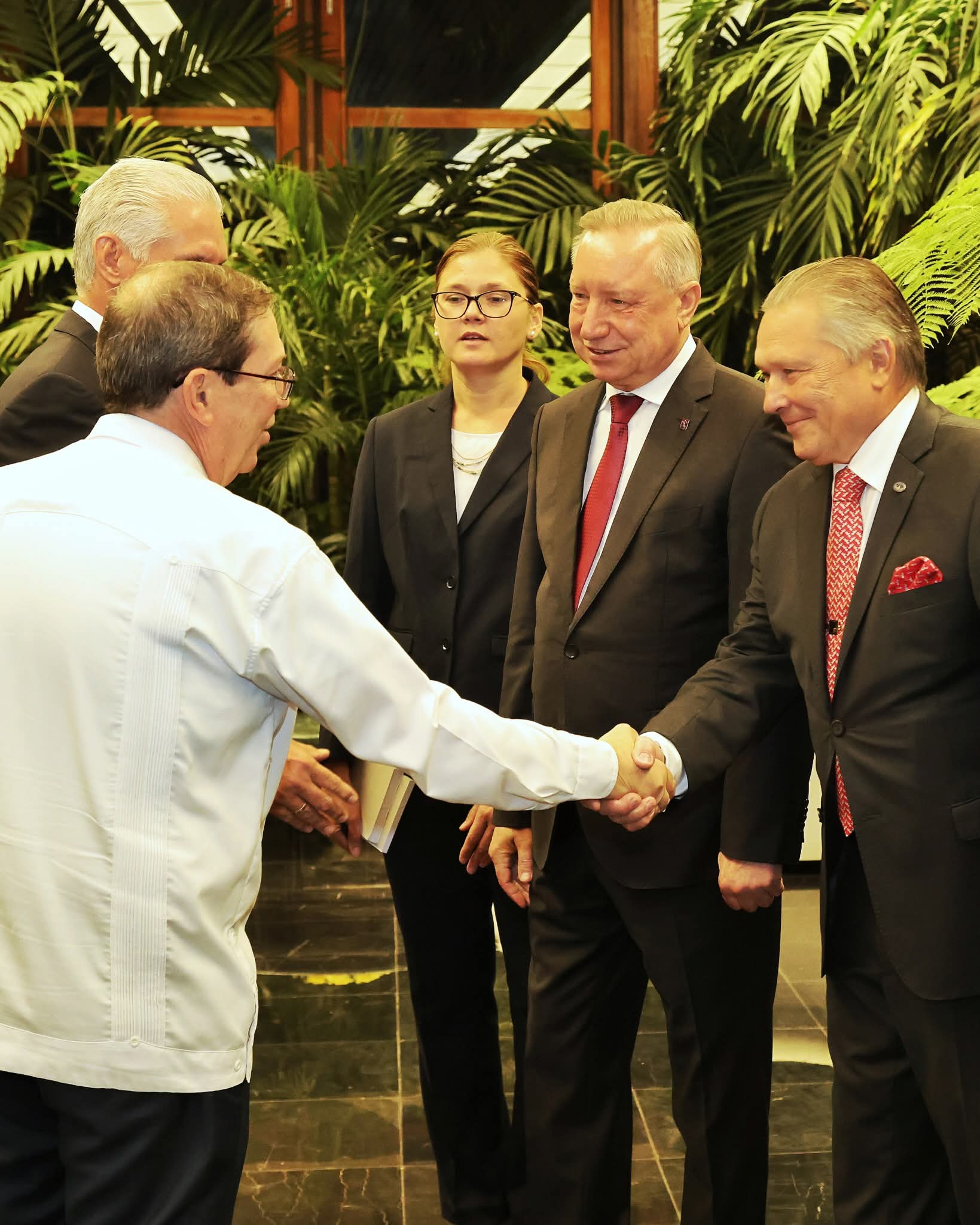«El presidente Vladimir Putin está al tanto de nuestra visita y nos solicitó trasladarle un saludo», expresó el gobernador de la ciudad rusa de San Petersburgo, Alexander Beglov, al Primer Secretario del Comité Central del Partido y Presidente de la República, Miguel Díaz-Canel Bermúdez, quien recibió al distinguido visitante en la tarde de este lunes en el Palacio de la Revolución.