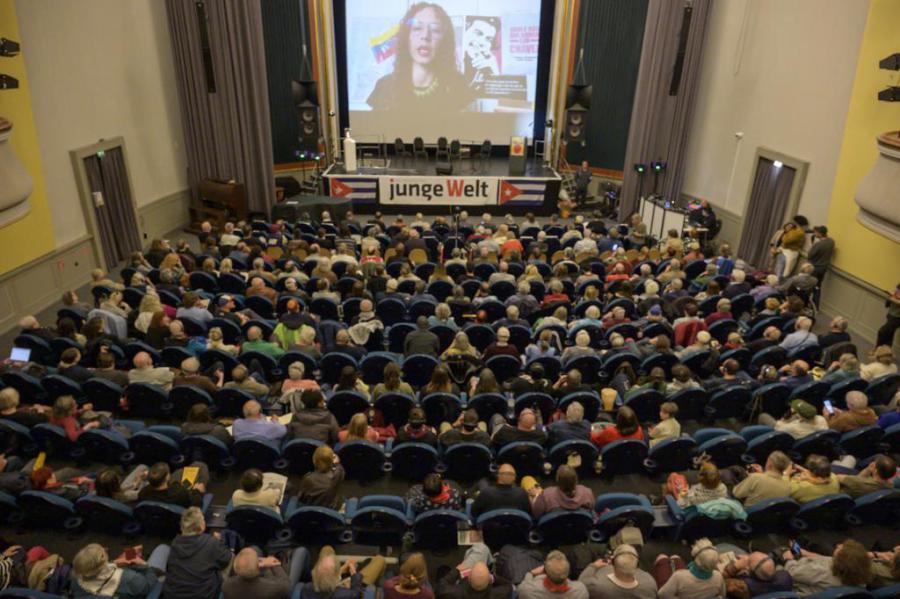 Activistas de solidaridad con Cuba llegaron de todos los rincones de Alemania, y desde Austria y Suiza hasta Berlín para asistir a la Conferencia Internacional de Solidaridad con Cuba celebrada el pasado sábado, 11 de abril, en el cine Babylon. Más de 600 personas abarrotaron los dos pisos de la sala, todos querían mostrar su solidaridad con la Isla y homenajear a Aleida Guevara March, quien recibiría esa tarde el premio «Rosa Luxemburgo», que otorga el diario alemán junge Welt y la revista cultural Melodie und Rhythmus y que distingue a la pediatra cubana por su amplia labor internacionalista. La hija del Guerrillero Heroico recibiría este premio también en nombre del pueblo cubano, al que se reconoce por su valentía y resistencia ante el imperialismo estadounidense.