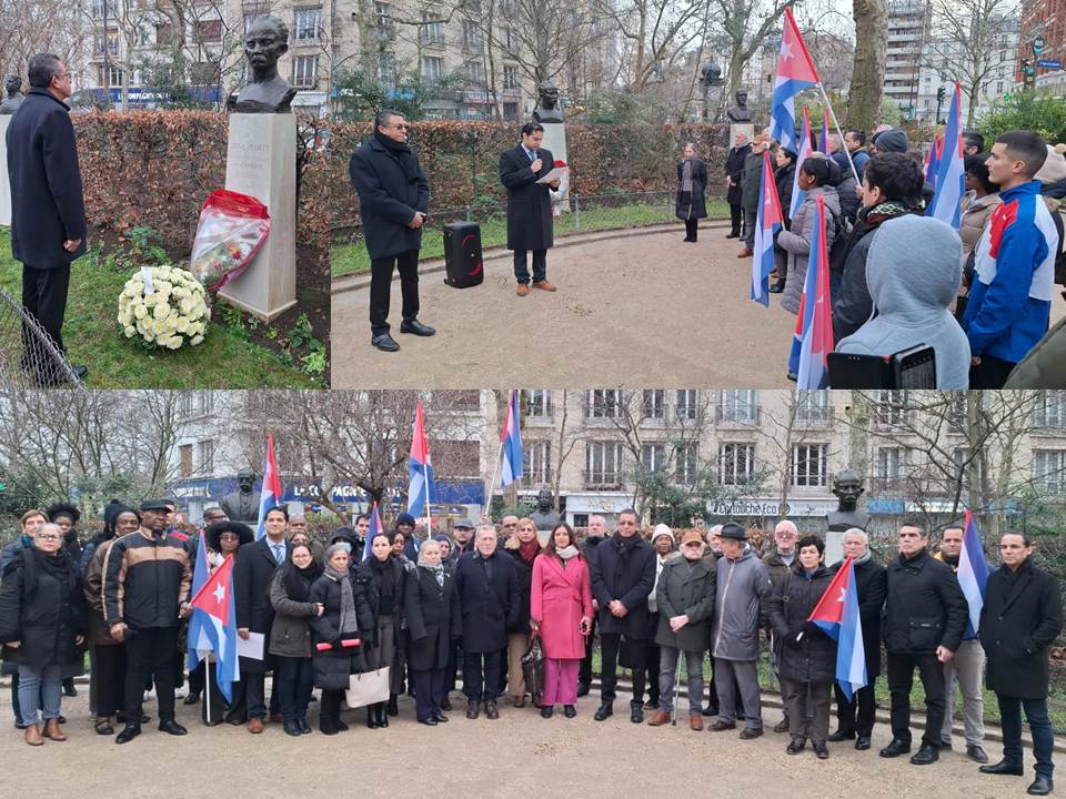 Cubanos, franceses solidarios y diplomáticos latinoamericanos conmemoraron en Paris el aniversario 173 del natalicio del héroe nacional de la Isla, José Martí, cuyo legado de independencia fueron resaltados.