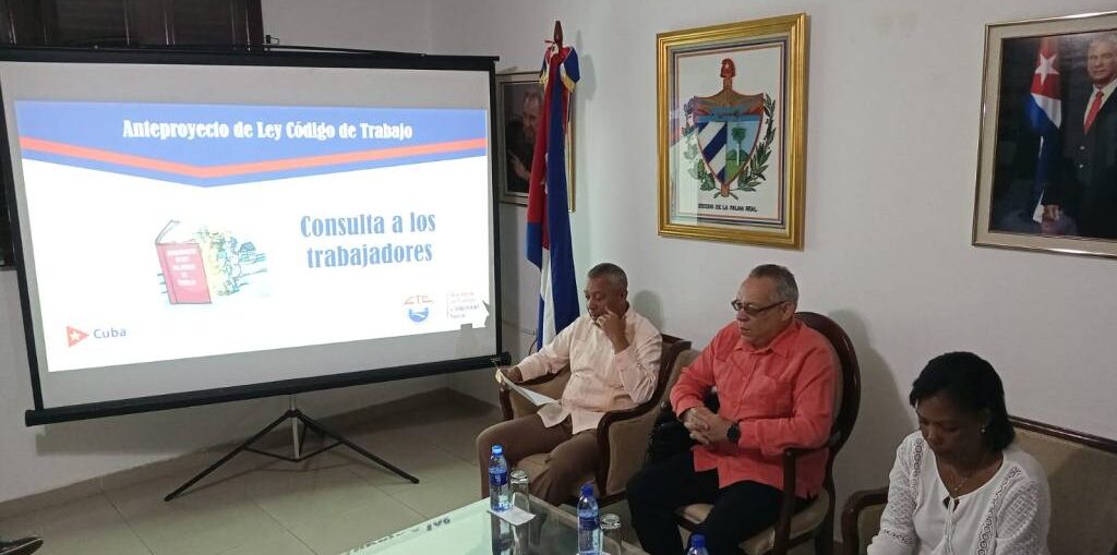 La misión estatal de Cuba en República Dominicana realizó un análisis del anteproyecto del nuevo Código de Trabajo, como parte del proceso de consulta que se desarrolla en los colectivos laborales de la isla desde septiembre pasado. El encuentro contó con la presencia del ministro de Trabajo y Seguridad Social de
