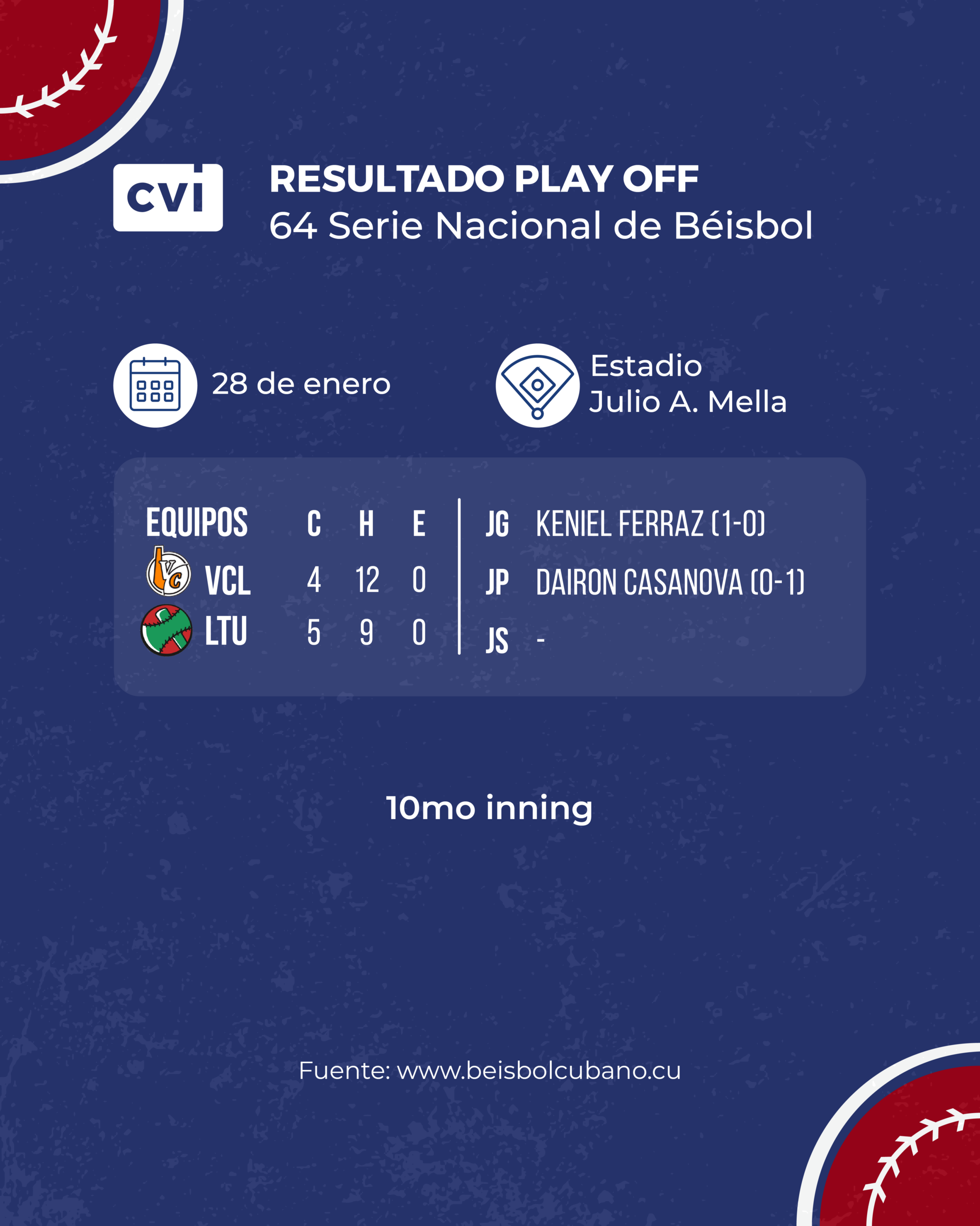 Por segunda temporada consecutiva, los Leñadores definirá su pase a semifinales en el séptimo juego del Play Off. Este choque ante Villa Clara dará inicio mañana jueves 29 de enero desde la 1:30pm (hora local) en territorio tunero.