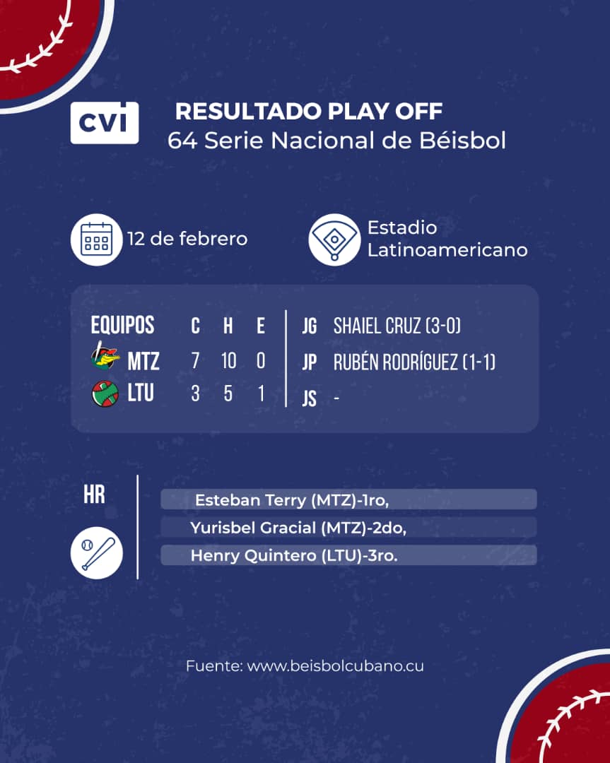 En tanto, por Las Tunas, Henry Quintero tuvo una tarde productiva al despachar cuadrangular con dos compañeros a bordo, registrando así su tercer jonrón de la postemporada, uno en cada fase de esta instancia decisiva. Más allá de este destello ofensivo, los Leñadores no pudieron usar sus «hachas» en el resto de las entradas, controladas por el derecho matancero Armando Dueñas, quien enfrentó a cuatro bateadores y ponchó a dos para sellar el éxito.